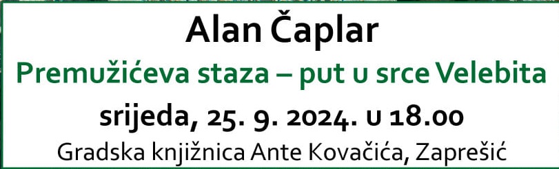 Planinari i vi koji volite prirodu dođite, gledajte i poslušajte o najljepšoj planinarskoj stazi. U organizaciji Gradske knjižnice Ante Kovačića – Zaprešić.